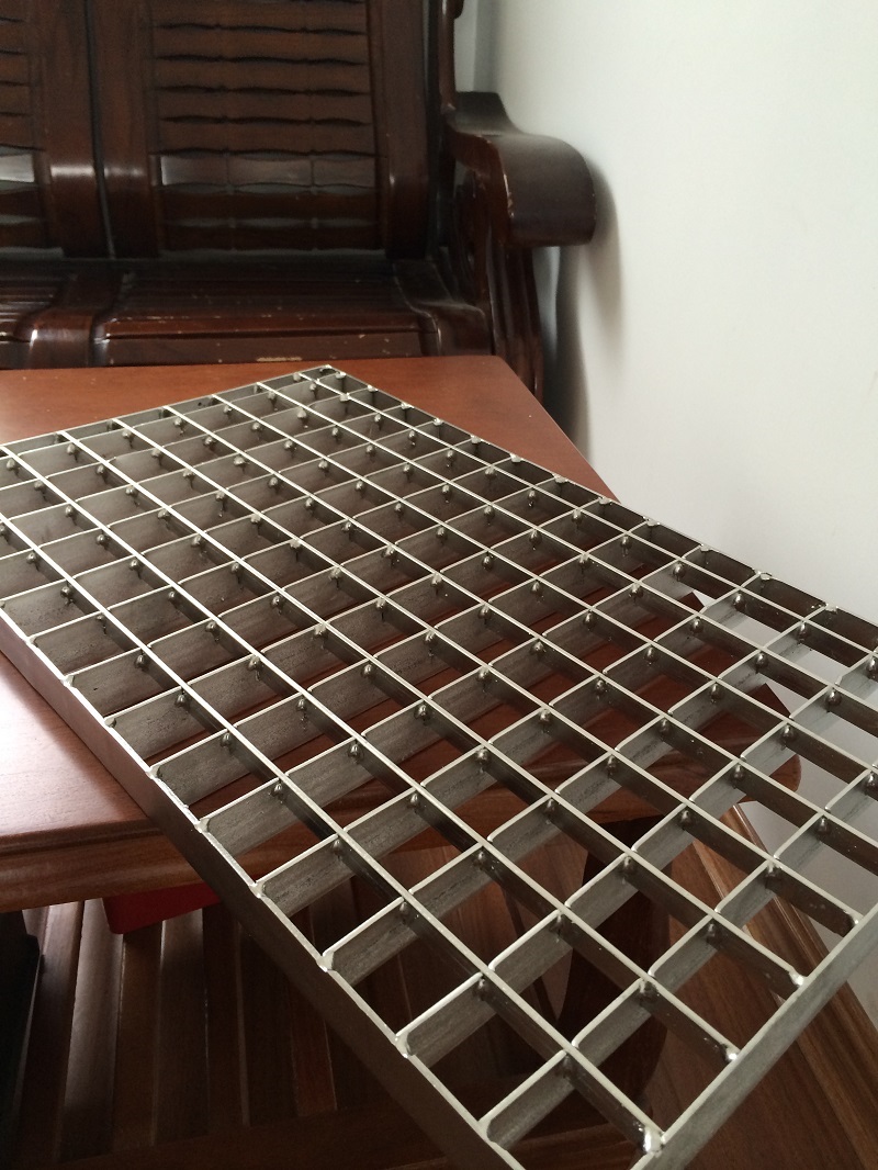 压锁钢格板的横杆通常为 20×5 /12×5/12×3的扁钢(或其它规格),通过强大压力压入承载扁钢,扁钢间的节点处通过变形产生的挤压力自动锁紧,可使用普通碳钢、铝合金或是不锈钢制成。 由于标准压锁钢格板结构为垂直两个方向对插构成,形成较标准压焊钢格板更为良好的外观效果,尤其适合于作为货架平台、格子窗、隔断栏、采光栅、室内吊顶等。另外,由于此种结构的钢格板能提供更好的侧向(钢格板宽度方向)承载能力,并且能有效防止大规格的承载扁钢产生倾斜失稳的问题,压锁钢格板特别适合作为重荷载钢格板使用。