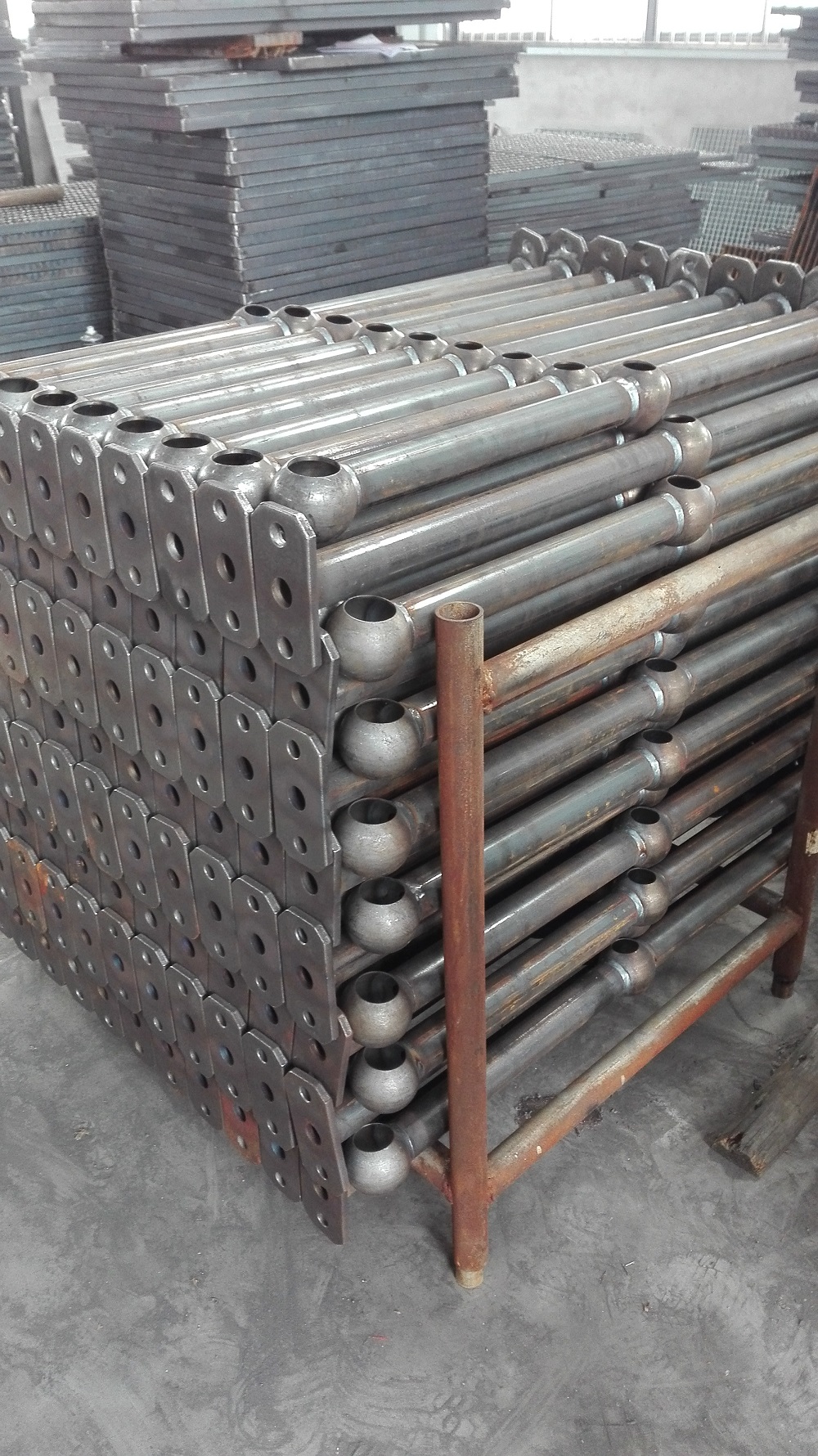 4)、穿栏杆管件于第一、第二根立柱,并使其超出第一根立柱约75mm.